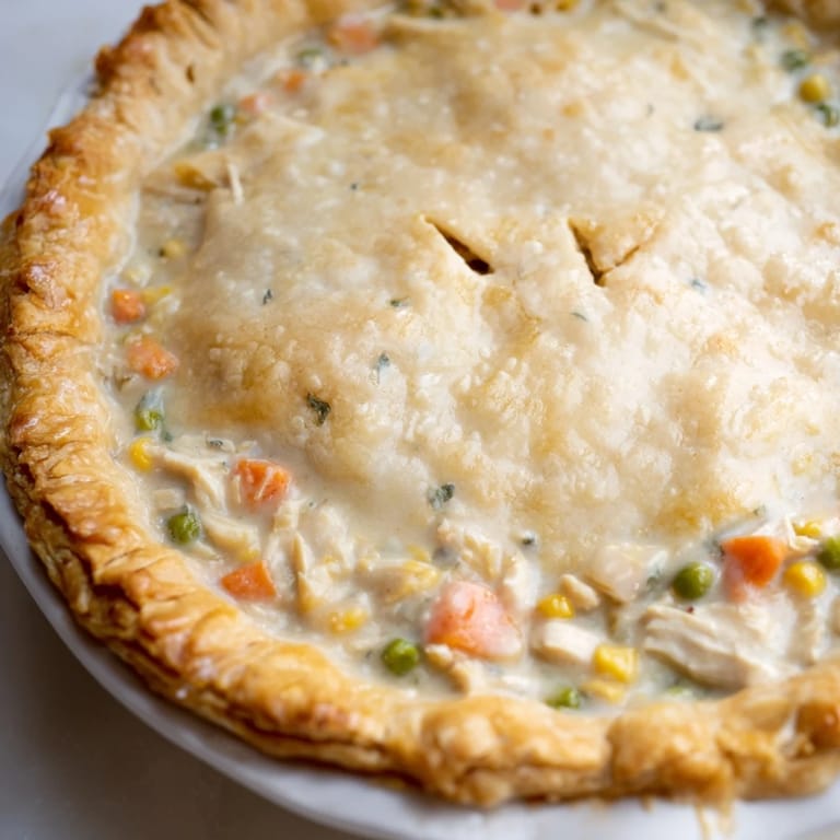 Save There's something about the smell of a chicken pot pie baking that takes you straight back to someone's kitchen—maybe your grandmother's, maybe a friend's house on a cold afternoon. I discovered this version years ago when I had a fridge full of vegetables that needed rescuing and a craving for something warm and substantial. The first time I pulled it from the oven, golden and steaming, I knew I'd found my go-to comfort dish. It's the kind of meal that feels fancy enough to serve guests but honest enough to make just for yourself on a Tuesday night.