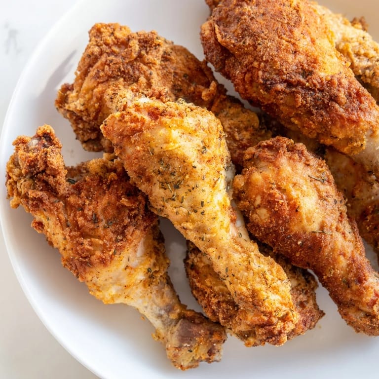 Most people under-season fried chicken because they're nervous about adding salt, but you need it both in the marinade and in the coating. The salt in the buttermilk penetrates the meat and seasons it from within, while the salt in the flour coating stays on the surface where your taste buds encounter it first—that double-layer approach is what makes professional fried chicken taste so memorable. The smoked paprika is there not just for color but for depth; it adds an almost imperceptible smokiness that makes people wonder why your version tastes more interesting than the standard kind.