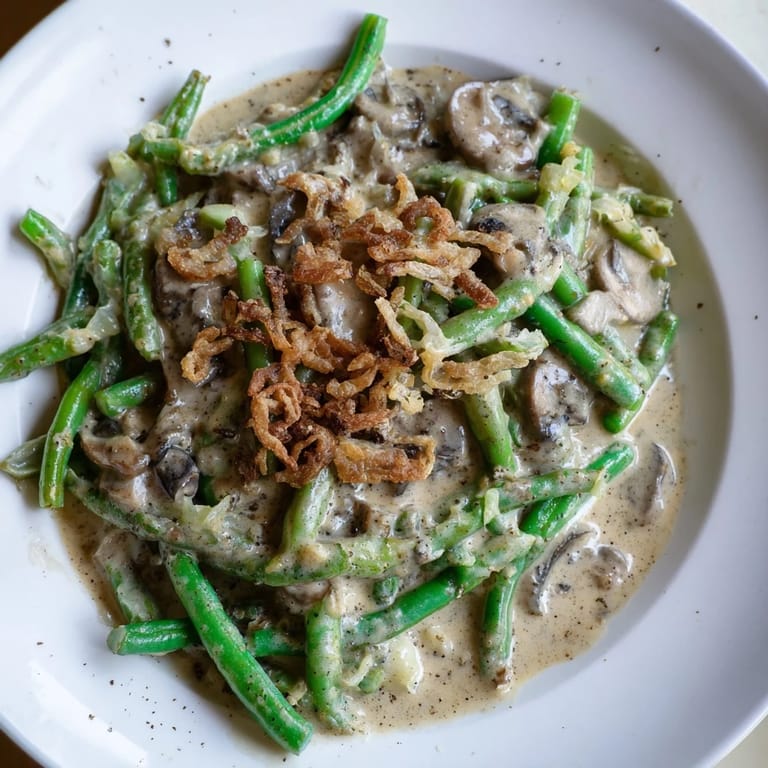Save There's something about the smell of mushrooms caramelizing in butter that instantly transports me back to my aunt's kitchen on Thanksgiving morning. She'd always make this green bean casserole first, setting it aside so it could rest while she tackled the turkey, and somehow that creamy, earthy dish became the thing everyone actually fought over. It's deceptively simple—just fresh green beans swimming in a silky mushroom sauce with that unmistakable crispy onion crunch on top—but it tastes like comfort wrapped up in a baking dish.