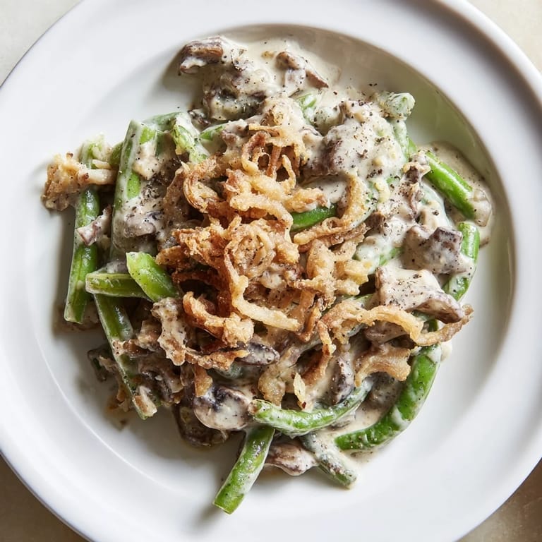 Save This green bean casserole has a way of becoming the dish people request, the one that gets finished first, and the one you're asked to bring back. It's humble enough to belong at a casual dinner and elegant enough for your fanciest table.