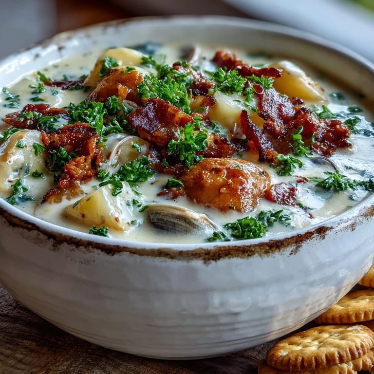 Save My first real bowl of New England clam chowder arrived on a gray October afternoon at a small harbor shack, and I remember being struck by how the cream seemed to glow against the white ceramic. The clams were impossibly tender, the potatoes had this waxy sweetness, and there was bacon underneath it all, working quietly in the background. Years later, I realized that chowder isn't really about complexity—it's about respecting each ingredient enough to let them sit together without fussing. When I finally made it at home, I understood why people return to this soup again and again.