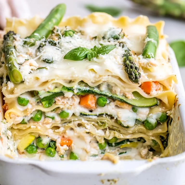 Save The first time I made this lasagna, it was supposed to be a quick weeknight dinner but ended up being the meal my sister still talks about months later. I had grabbed every spring vegetable I could find at the farmers market that morning, thinking I would figure out what to do with them later. When I started layering that bright green asparagus and sugar snap peas with creamy Alfredo sauce, something magical happened in the pan. The vegetables stayed tender-crisp instead of turning mushy, and the whole house smelled like garlic and fresh basil. Now it is the only lasagna I make when the weather starts getting warm.
